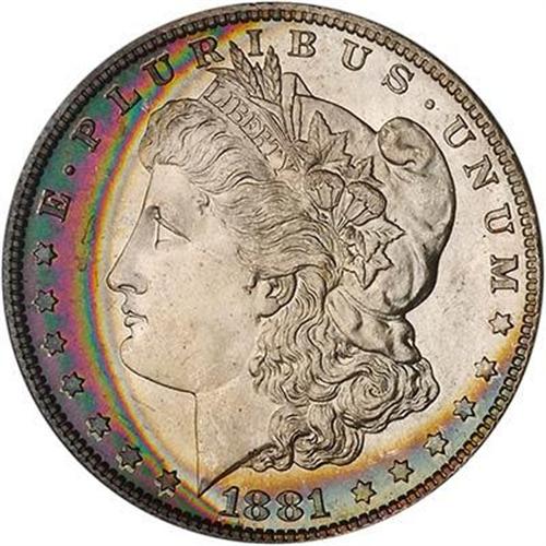 In addition to its fantastic surfaces and razor-sharpness, this coin offers a crescent of lovely toning, the shading making a nice transition from electric blue to magenta with some heather brown thrown into the mix by the unhurried accretion of Time working its magic on the silvery radiant luster.