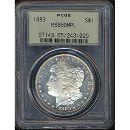 We have handled numerous 1883 dollars, business strikes or proofs, and it always pleases us to see one that comes as close to perfect eye-appeal as this cameo-frosted example. Both sides are brilliant.