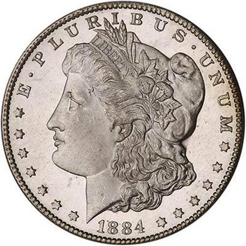 Lustrous, mirror-deep surfaces display rich silvery iridescence, with the overall appearance greatly bolstered by cartwheel luster and cameo frosted devices. Regarding this date, 1884-CC is uncommon in circulated grades, readily available but hoarded in baggy low mint state levels, and almost heart-stopping in full Mint State 66 condition with prooflike fields. Comparable with others we've seen offered in Mint State 67 holders.