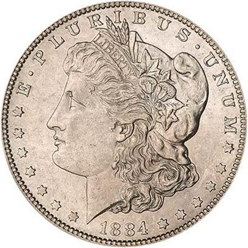 A coin that glows with 90% mint frost over both sides, the cartwheel effect of this luster still evident as the coin is held in the hand and slowly turned, tilted, examined, and admired. 1884-S is one of the most difficult dates to obtain Mint State. Most entered circulation. A choice About Uncirculated 58 like this will surely find a welcome home in any high quality set of Morgan silver dollars.