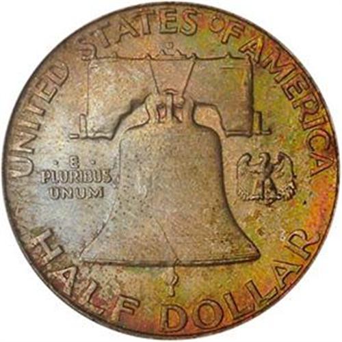 <B>Franklin Half Dollar. 1954-D PCGS graded Mint State 66. Full Bell Lines.</B> Likely this han