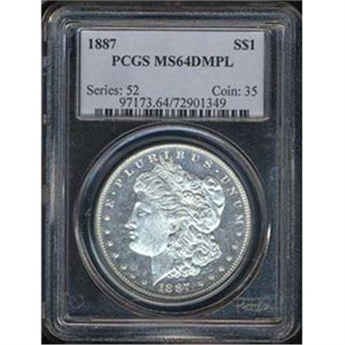 All-brilliant white surfaces swirl with luster on the devices, prooflike reflection in the fields. As is typical of a mid-1880s Philadelphia strike, excellent detail all around.