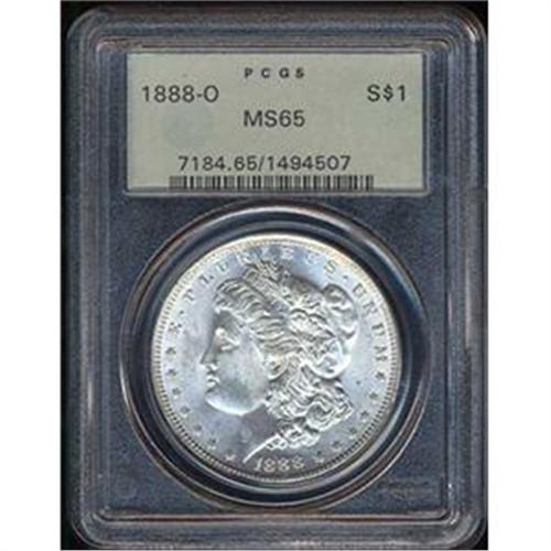 What is most noticeable when one first examines this 1888-O is its thick, vibrant mint luster -- it churns around each side unimpeded by obvious scratches and untouched by even a hint of toning. A coin of remarkable beauty and substance to the collector.