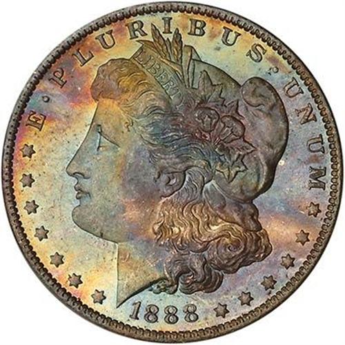 The obverse of this well preserved O-mint issue has acquired strikingly deep yet colorful toning whose semi-pastel shades give it a pleasing appearance.