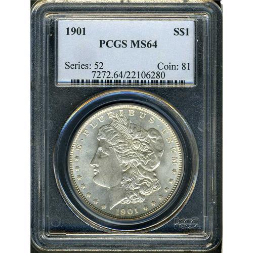 The snowy white color is especially revealing on the cheek, the eagle, and overflowing the surfaces of this handsome 1901. Struck with methodical precision throughout, which is unusual for 1901, the coin boasts sharp hair and eagle feathers, plus an extremely clean cheek for the MS64 level.