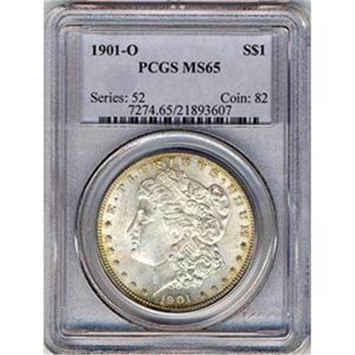 As in the case of the 1899-O in this group in PCGS MS65 grade, this coin is every bit an unquestioned Gem with vibrant, gold-toned surfaces plus a crisp strike. We find a few slight bagmarks that impinge on the otherwise satiny luster typical of the New Orleans mint dollars struck around the turn of the century.