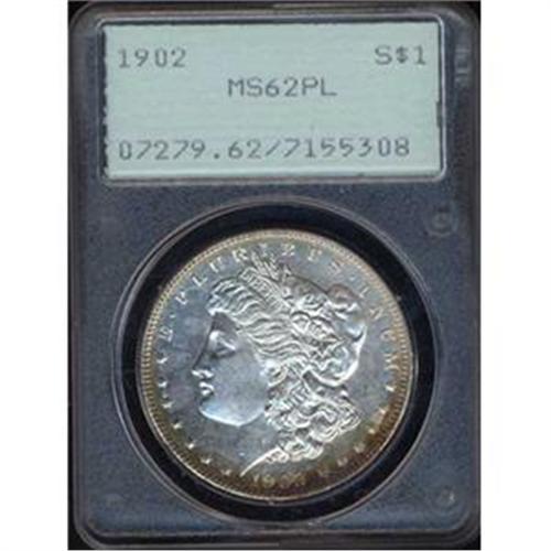 Toned at the rim, elsewhere displaying prooflike reflective qualities in the field and on the brilliant devices. A few spots of graininess in the left obverse field. Early holder, pre-1989.