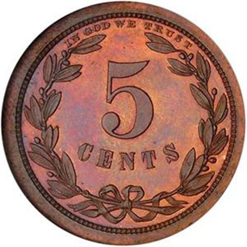 <B>1868 Pattern Nickel. Judd-626. Copper. NGC graded Proof 64. Red and Brown.</B> A few scatter