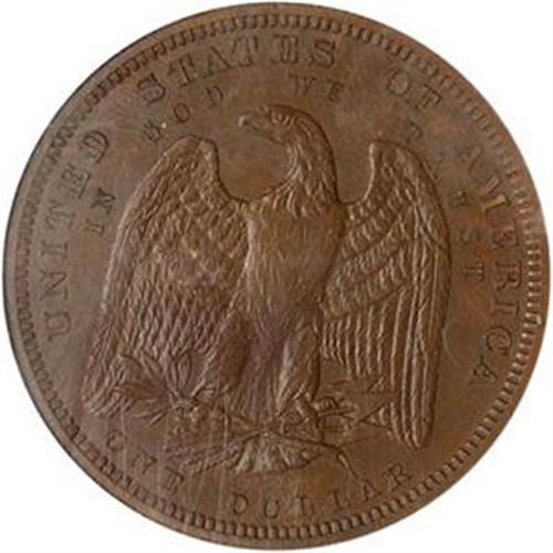 <B>1879 Pattern Silver Dollar. Judd-1614, Pollock-1810. Copper. NGC graded Proof 64. Brown.</B>