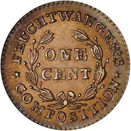<B>1837 Feuchtwanger Cent. NGC graded Mint State 62.</B> Eagle posed facing right with snake cl