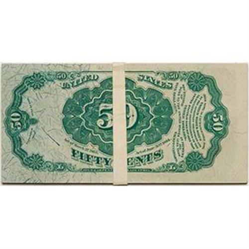 <B>F-1381. Original Bundle of 50c Fractional Currency Notes with Band. Gem Crisp Uncirculated.<