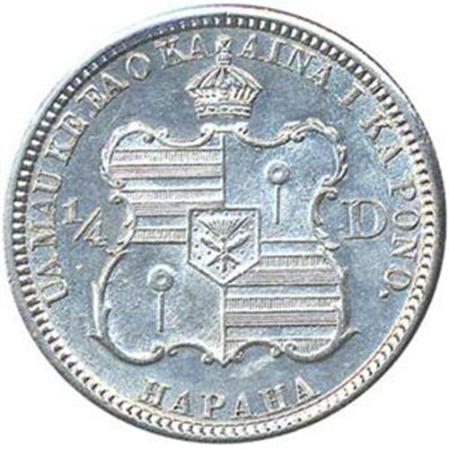 <B>Hawaii. 1883 King Kalakaua I. 1883 Quarter Dollar. About Uncirculated 55.</B> Lustrous; only