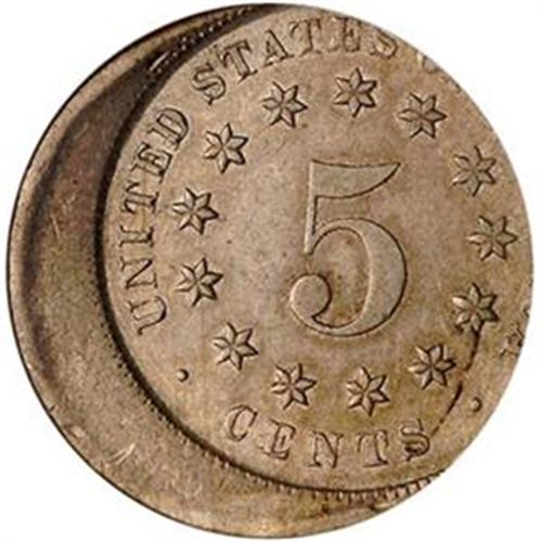 <B>No Date Shield Nickel Struck 15% Off Center at 3 O'clock. NGC graded Extremely Fine 45.<