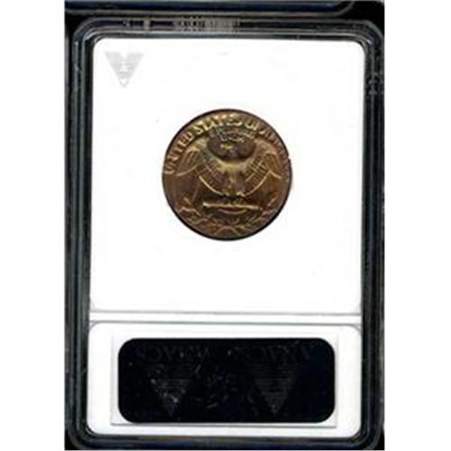 <B>1971-D Error Washington Quarter on 1C Planchet. ANACS graded Mint State 60. Red and Brown.</