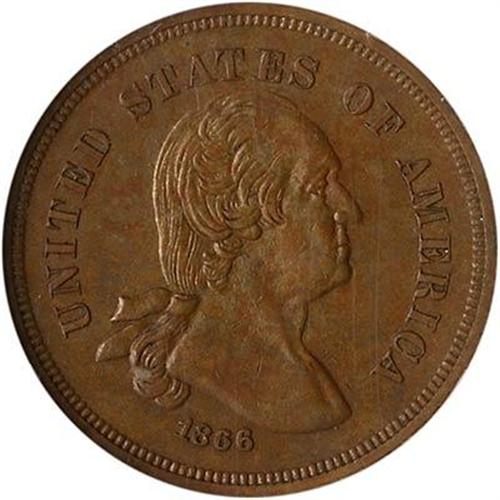 Deep shades of original golden brown with both sides of this Washington pattern five-cent piece very sharply made. A very rare Pattern and well worth your attention!