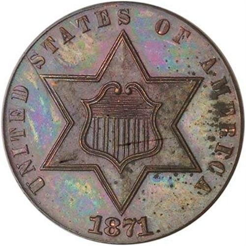 <I>Obverse and reverse: The dies used to coin regular-issue Proof coins this year.</I> Nearly every year the Mint produced "regular dies trial pieces" as numismatists refer to them. Whether made to test the dies -- or simply for sale to collectors as profitable novelties, a not unheard of activity at the mint in those days -- they are usually in softer metal than the production coin (which seems to point to the former); however, some trial pieces were struck in much harder alloys like nickel, and may have been pure pieces d' caprice. Rare and desirable.