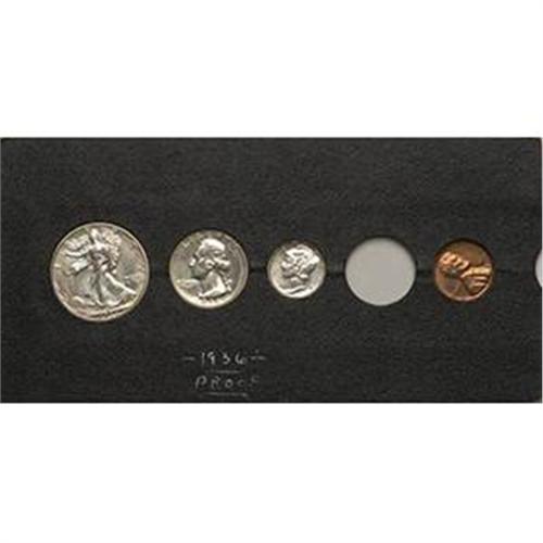 Includes the following pieces: Lincoln Cent, NGC graded Proof 64. Red and Brown. "Satin." Buffalo Nickel, NGC graded Proof 66. "Satin." Mercury Dime, NGC graded Proof 65. Washington Quarter, NGC graded Proof 65. Walking Liberty Half Dollar, NGC graded Proof 65. The silver coins all have light milky toning from the mint's cellophane sleeve. A gemmy set. Lot of 5 coins.