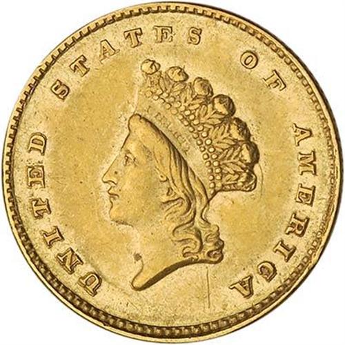 The decision to strike gold dollars along with silver dollars was the pet project of government officials. In theory, the price of silver and gold would be held in a steady balance and both would circulate alongside each other and be interchangeable in commerce. Naturally, coinage began in 1849, just as the flood of gold from the California Gold Rush began, sending a crushing supply of gold onto the world market. The tiny Gold dollars were minted in large numbers by the Philadelphia Mint, and in much smaller amounts at the three branch mints in the late 1840s and early 1850s. After a few years in circulation the Gold dollars were determined to be too small, measuring a scant 13 millimeters. Engraver James B. Longacre produced new dies in late 1854 which increased the size of the Gold dollar to 15 millimeters and depicted Liberty as an Indian Princess with a small head, but used the same amount of gold in the planchet. This design lasted until mid year 1856 when Liberty's head was modified once again to the large head or Type III design. Dahlonega struck the Type 2 pieces in 1855 only, with a mere 1,811 pieces made.