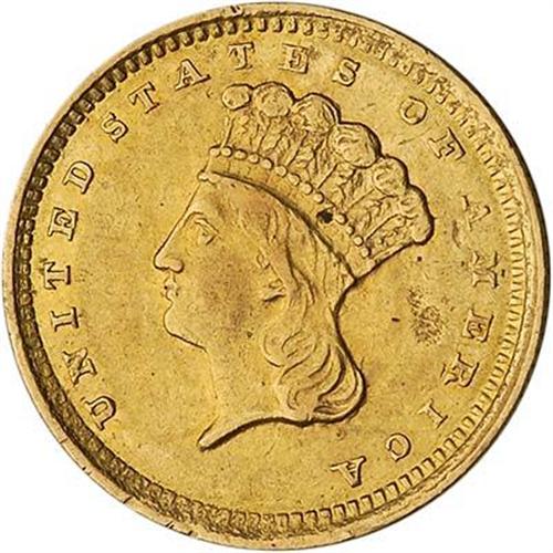 With a small mintage of 13,280 pieces, the 1857-C is very scarce (although not a major rarity) in the gold dollar series. Liberty, the wreath, the date and mintmark are all quite well struck, while some of the rim denticles are weak as often found. NGC gold this coin's grade right: is has plenty of luster with only a bare trace of friction on the highest points and is close enough to Mint quality to qualify for a strong bid.