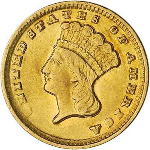 A bright and lustrous pale yellow gold specimen with distinctive frosty highlights. The fields are satiny and leaning ever so slightly toward prooflike in a few places, and the satiny surfaces are essentially devoid of marks of serious consequence. Further, the strike is rather sharp for 1861-D and bold in all key areas save for a touch of rub on the high points, virtually all of the design elements are clearly represented. Two pairs of dies were shipped to Dahlonega on December 10, 1860 for the 1861 gold dollar production, arriving January 7 of 1861. No gold dollars were coined under Union auspices, however. In April 1861, after the Confederacy seized the Dahlonega Mint, rebel authorities coined an unknown quantity of gold collars using an obverse of 1860 and one of the 2 new reverse. Always seen with U in UNITED weak; ICA often weak as seen here. However, this particular AU58 has sharper details on the feather plumes than most with a clear LIBERTY on the headband. Only a few Mint States survive and even About Uncirculated examples are very rare.