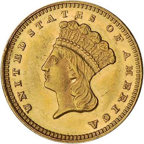 The Gold Dollar of this year had an impressively small mintage of only 3,000 business strikes, and as two numismatic researchers have pointed out, it is of the same rarity as 1876. Both are very scarce in high grade. Frosty, if not quite in full brilliance.
