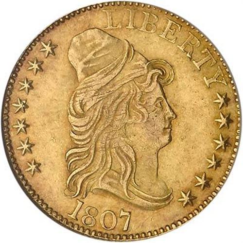 A sparklingly fresh specimen with rich "antique" golden iridescence on both sides, with some orange patina just forming. The strike is normal for the issue with the usual heavy metal flows on both sides and weak hair around the area of Liberty's ear. Similar minor softness in the strike occurs in the eagle's neck, the E PLURIBUS UNUM scroll, and edges of the shield. With only 32,488 pieces minted (spread over several die varieties), this is among the scarcer dates in the series, though by no means so rare as to be unaffordable in choice Mint State condition.