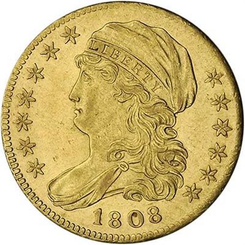 A lustrous light yellow-golden specimen that has a small rim bump above ES of STATES. Very clean and choice elsewhere for this early Capped Bust $5 gold piece. Well worth considering.