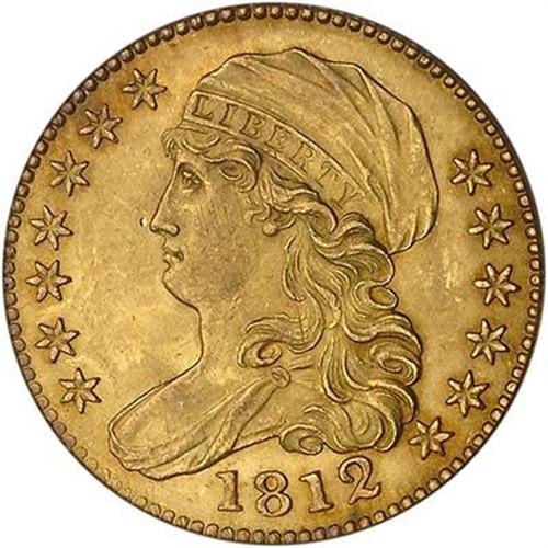 Many Uncirculated specimens of this variety are known that apparently came from an old hoard. This coin is a nice representative of its era and one of only 58,087 pieces made, nearly half as many as the 1811 emission. The otherwise golden-rose color deepens to polychrome-orange and coppery shadings in select areas. Heavy mint frost is found throughout the fields and the devices, with razor-sharp details on all curls, cap folds and stars. Only some minor weakness is seen around the eagle's feathers at center - a common situation due to the design of this piece. Definitely worth your consideration!