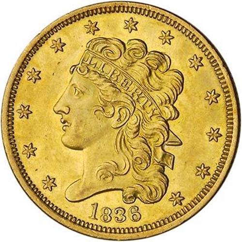 A scarce, high-grade example with jaw-dropping quality. Each side has a bright yellow-gold center that is surrounded by a wide margin of flashy surface that is almost prooflike in its radiance. Struck with almost scientific precision on the hair curls and eagle, it is an impressive $5 gold piece whose beauty is clearly on display. The eagle may be "bald" but his head is covered in crisp golden feathers on this piece. Some coins tend to wheeze a little when they are put into a Mint State 64 slab, but this coin sings arias from its lovely fields and golden devices.