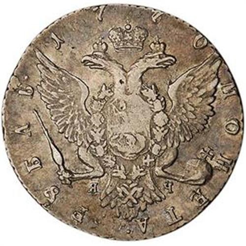 <B><FONT COLOR="#FF0000">RUSSIA</FONT> Catherine II. Ruble, 1770.</B> Bitkin-195; Dav-1684; Cr