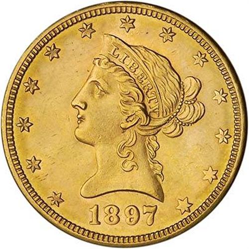 There is little to say about the surfaces of this choice coin as they are as near to perfect as imaginable for the MS63 grade. The mint frost is thick and radiates intensely over each side. There is just a bit of light orange patina present as well. Sharp-edged devices and lettering throughout, except that most of the stars are flat. Seized this opportunity to bid, because 1897-O is very difficult to obtain in this lofty condition.