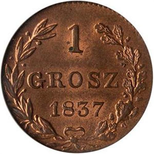 <B><FONT COLOR="#FF0000">RUSSIA-POLAND</FONT> Nicholas I Grosz, 1837-MW.</B> Bitkin-1165; Cr-1