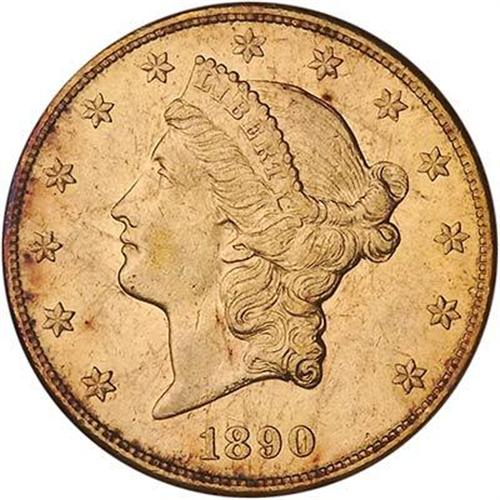 Some old rust-brown toning in areas (from the underlying copper alloy in the gold, since gold itself doesn't tone or tarnish). Some luster present, in and around the main devices and around all of the stars as depicted in the photos. Extensive light surface abrasions, about on a par with other CC-mint twenties. Scarce.