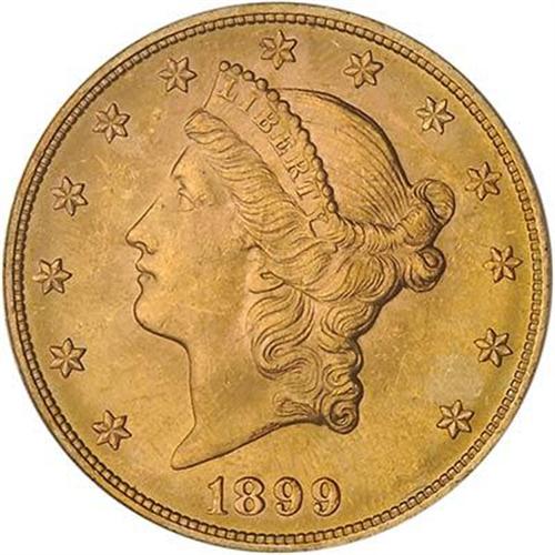 The otherwise warm-gold color yields to light toned effects suggesting undipped originality. Struck with systematic exactness throughout for this common date from the late 1890s.