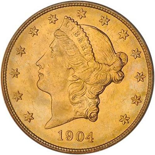 The otherwise warm-gold color yields to warmer shimmering metallic hues in places. Struck with systematic exactness throughout, one can see nearly full stars around Liberty, as well as clear hair curls and waves, a sharp coronet (you can count the 13 beads or pearls lining its edge), and similar detail on the side with the majestic eagle. A high grade for any Liberty $20 gold piece.