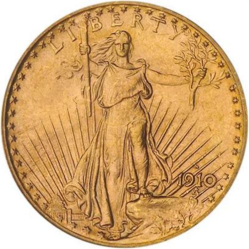 Struck with exactitude rarely found on a 1910-S. The otherwise golden-bright color shines with full satiny cartwheel radiance.