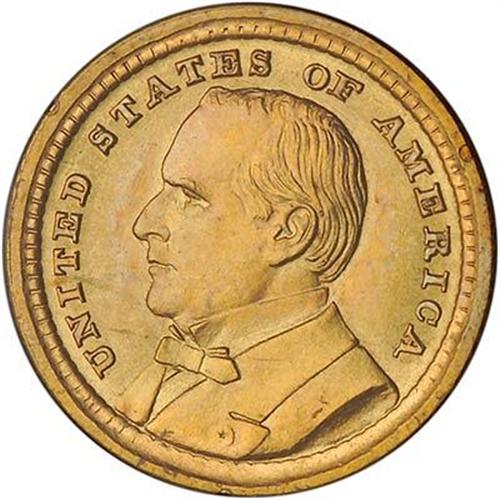 The original intent of minting this Louisiana Purchase gold dollar was to devote sole honor to Thomas Jefferson. But when President McKinley was shot in the summer of 1901 (after the enabling legislation for the coin had already passed), the government decided to share the nation's grief by placing his portrait on half the available issue. In so doing, this created two Types for collectors to acquire.