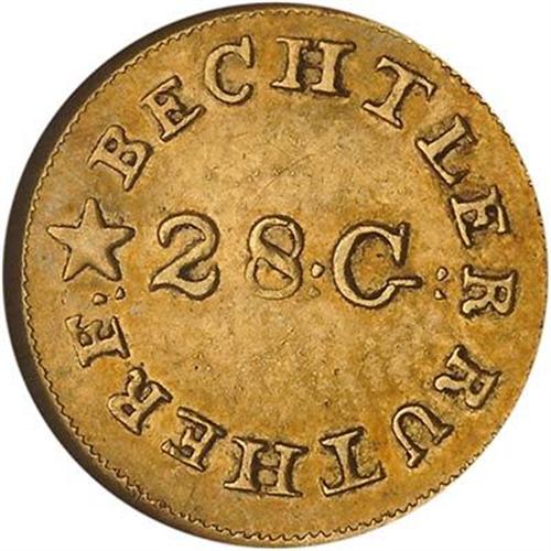 Issued during the years 1837-42. This coin's devices were struck with energy and full capacity by the dies imparting the simple design elements thoroughly on both sides. Lustrous. The Bechtlers' coinage earned great admiration during this period for the simple reason the coins were of the true weight and fineness stated, and the gold value was in point of fact worth slightly over face value. In addition to this $2.50 gold denomination, the Bechtlers also coined the first gold dollars in the United States (the Philadelphia Mint followed with its own gold dollars some 18 years later).