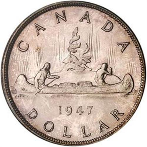 <B><FONT COLOR="#FF0000">CANADA</FONT> George VI. Dollar, 1947.</B> KM-37. Blunt 7. PCGS grade