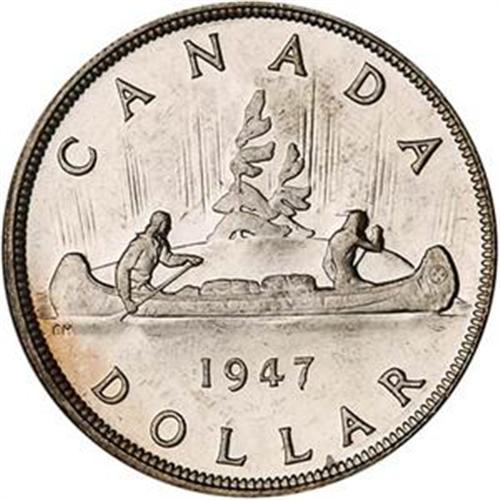 <B><FONT COLOR="#FF0000">CANADA</FONT> George VI. Dollar, 1947.</B> KM-37. Pointed 7. PCGS gra