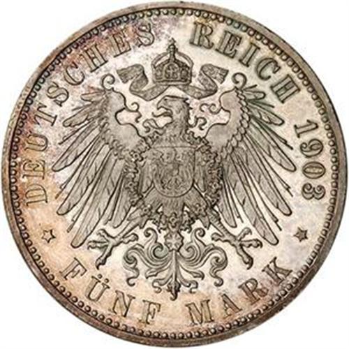 <B><FONT COLOR="#FF0000">GERMANY-SAXE-WEIMAR-EISENACH</FONT> Wilhelm Ernst. 5 Mark, 1903A.</B>