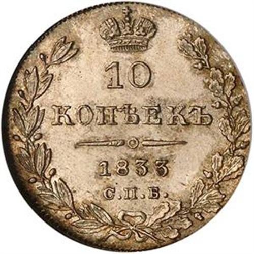 <B><FONT COLOR="#FF0000">RUSSIA</FONT> Nicholas I. 10 Kopecks, 1833-SPB NG.</B> Bitkin-317; Cr