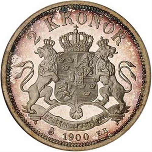 <B><FONT COLOR="#FF0000">SWEDEN</FONT> Oscar II. 2 Kronor, 1900-EB.</B>  KM-761. NGC graded Pro
