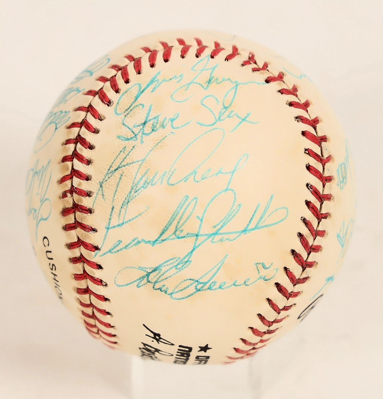 A Los Angeles Dodger signed baseball from the year 1987, when the team finished in fourth place in the National League West. Signatures include manager Tommy Lasorda, Steve Sax, Matt Young, Ken Landreaux and others. Ball looks game used, but signatures are clear. Please see photos for more details.