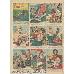 <B>L.A. Examiner Sunday Comic Section Group Lot (1942-43).</B></I> The <B>L.A. Examiner</B></I> ran a bevy of great comic strips in its Sunday Comics sections: <I>Katzenjammer Kids</B></I>, <I>the Little King</B></I>, <I>Family Portraits</B></I>, <I>Ripley's Believe It Or Not</B></I>, <I>the Lone Ranger</B></I>, <I>Tim Tyler's Luck</B></I>, <I>Rocky Mason</B></I>, <I>Snuffy Smith</B></I>, <I>Skippy</B></I>, <I>Tippie</B></I>, <I>Henry</B></I>, <I>Tillie the Toiler</B></I>, <I>Donald Duck</B></I>, <I>Room and Board</B></I>, <I>Bringing Up Father</B></I>, <I>Rosie's Beau</B></I>, <I>the Phantom</B></I>, <I>Little Annie Roonie</B></I>, <I>Jungle Jim</B></I>, <I>Flash Gordon</B></I>, <I>Sappo</B></I>, <I>Thimble Theatre</B></I>, and <I>Prince Valiant</B></I>. This lot consists of 101 Sunday Comics sections featuring 14 full sized pages of color comics. Each page measures approximately 15.5" x 21.5", and the sections average a Good to Very Good condition, and run from 1942-43. Take a trip back into the Golden Age of comics with this colossal collection of funnies! 101 items <BR><BR><B>Important notice:</B> Heritage usually auctions material at the rate of 200-250 lots per hour. On some occasions eBay Live bid software or the Internet may not be able to keep up with the pace of the auction. We recommend placing a realistic absentee bid now as insurance to avoid disappointment. Occasionally the auctioneer may eliminate or reject an eBay Live bid, and the auctioneer may also reopen a lot after the close of the eBay live bidding (usually because we missed an audience bid), and may reject your bid even if it shows you as the winning bidder. By bidding via eBay Live, you agree that Heritage may award the lot to another bidder at its sole discretion under the circumstances described above or any other reasonable circumstances. Since eBay bids are not shown to us until we open the lot on the floor, we treat those bids just like floor bids. In most cases the floor responds before the eBay bid is presented to us, due to Internet lag time, so for consistency we have made it a policy that floor bids are always considered first over tie eBay live bids. Also please note that all Heritage lots purchased through eBay Live carry a 20% Buyer's Premium. Please make sure you read the Terms and Conditions before you bid.