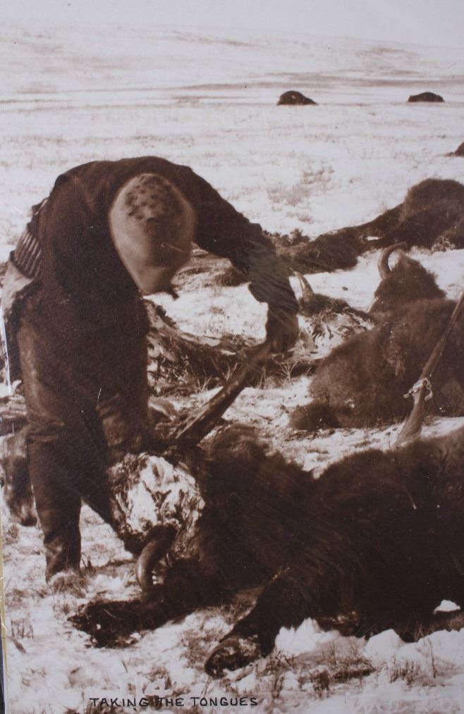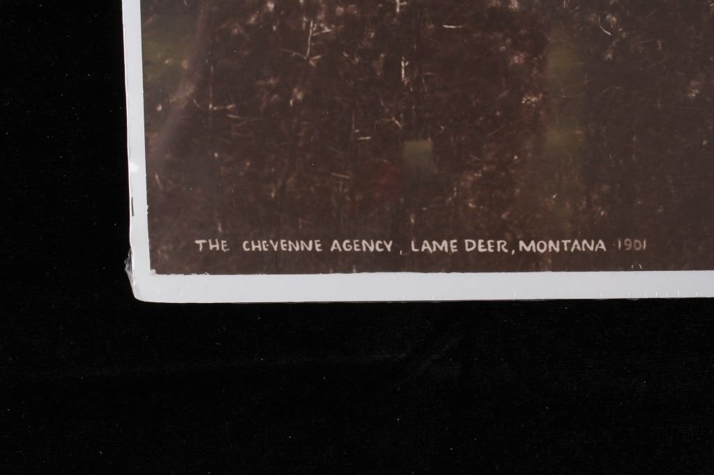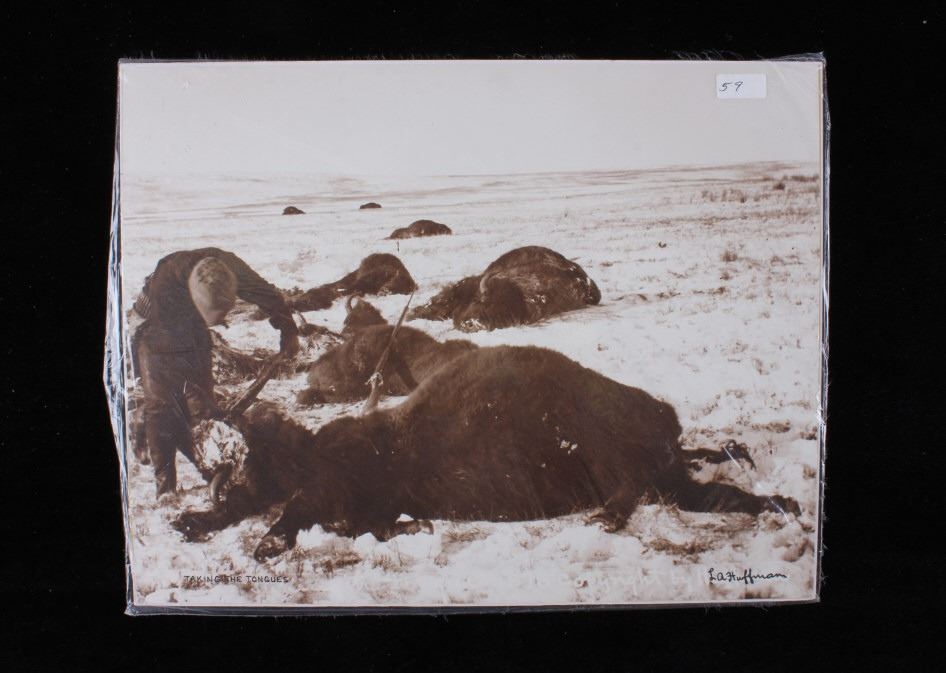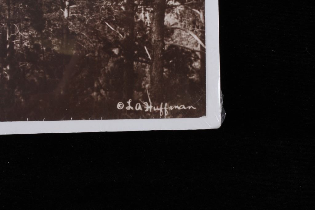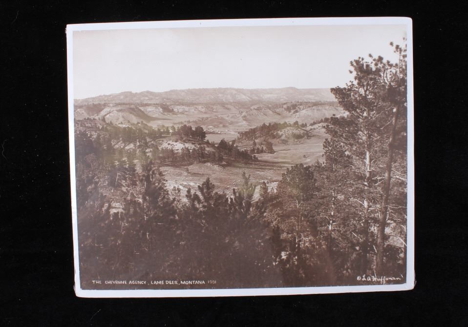 For your consideration is this collection of photos by L.A. Huffman circa 1890-1901, these pictures were taken by L.A Huffman whose work dated from 1878-1920. The Coffrin's old west galleries collection of Huffman negatives is one of the largest in existence today. these negative reproductions are offered to the public in a variety of sizes. Originally started in Miles City, Montana Coffrin's old west gallery relocated to Bozeman, Montana in 1991. The first photograph is titled "Taking The Tongues" and shows a buffalo hunter taking dead buffalo tongue. The second photograph isn't titled but shows a photograph of a ranch built at the base of the hill. The next photograph is titled "The O.W. Ranch on Hanging Woman Creek - 1890" and shows the ranch set up on the base of a hill. The last photograph is titled "The Cheyenne Agency, Lame Deer, Montana - 1901" and shows a beautiful scenic photo of a lush green valley. The condition of the photos in this collection are good with all the photos shown behind plastic wrapping and are in great display condition. The measurements of the photos in this collection are 11" x 14".