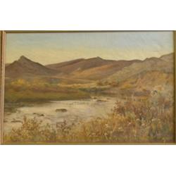 L'AUBINIÈRE, C. De (Act. 1880-1890). "Summer Sunset". Huile sur toile, signée. École canadienne. Oil on canvas, signed. Canadian School. 16" x 24" - 40.6cm x 61cm. $600/800