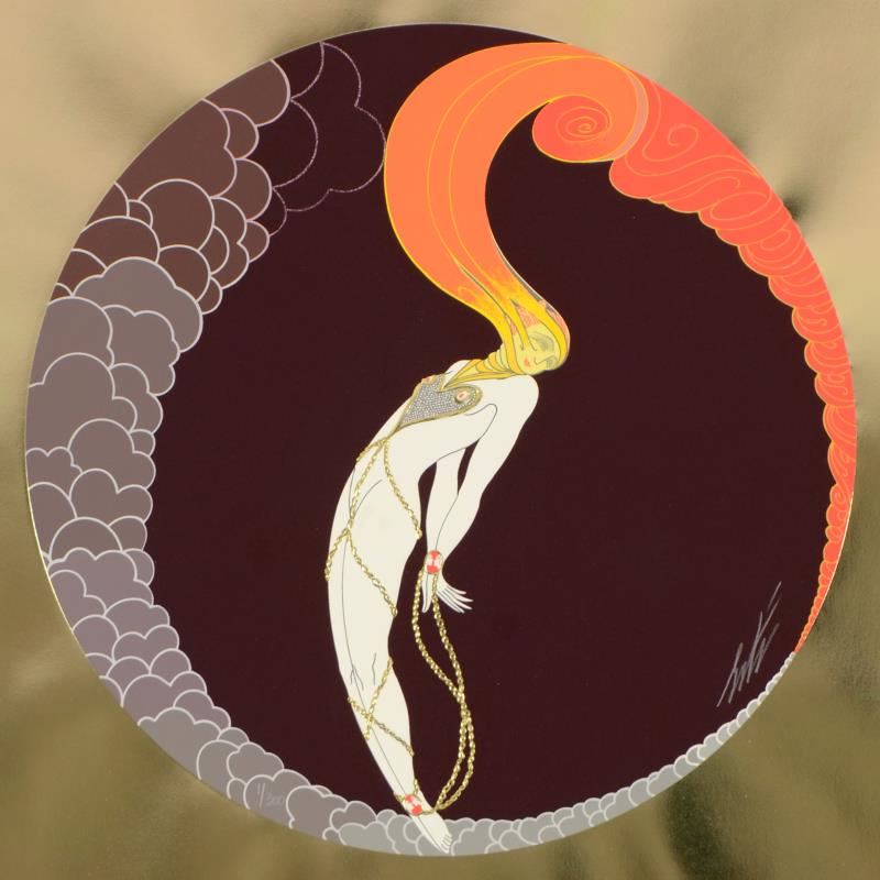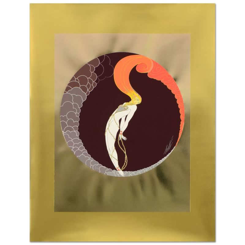 "L'Amour" is a limited edition serigraph on paper by Erte (1892-1990), numbered and hand signed by the artist. Includes Certificate of Authenticity. Measures approx. 17.5" x 23" (border), 13" x 17" (image). Due to the age of this piece and the delicate nature of the paper it may have some slight imperfections.