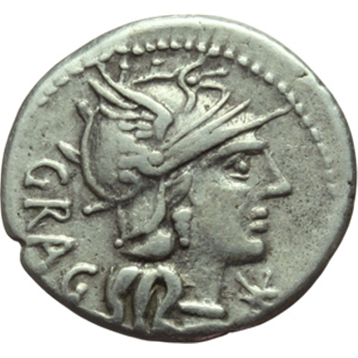 Repubblica Romana. L. Antestius Gragulus. Denario, 136 a.C. D/ Testa di Roma a destra. Sotto il mento, X. Dietro, GRAG. R/ Jupiter in quadriga a destra. Sotto i cavalli, L. ANTES. In esergo: ROMA. Cr. 238/1. B.9. AG. g. 3.83 mm. 20.00 Bel BB+/qSPL. Di grande modulo. Metallo lucente.