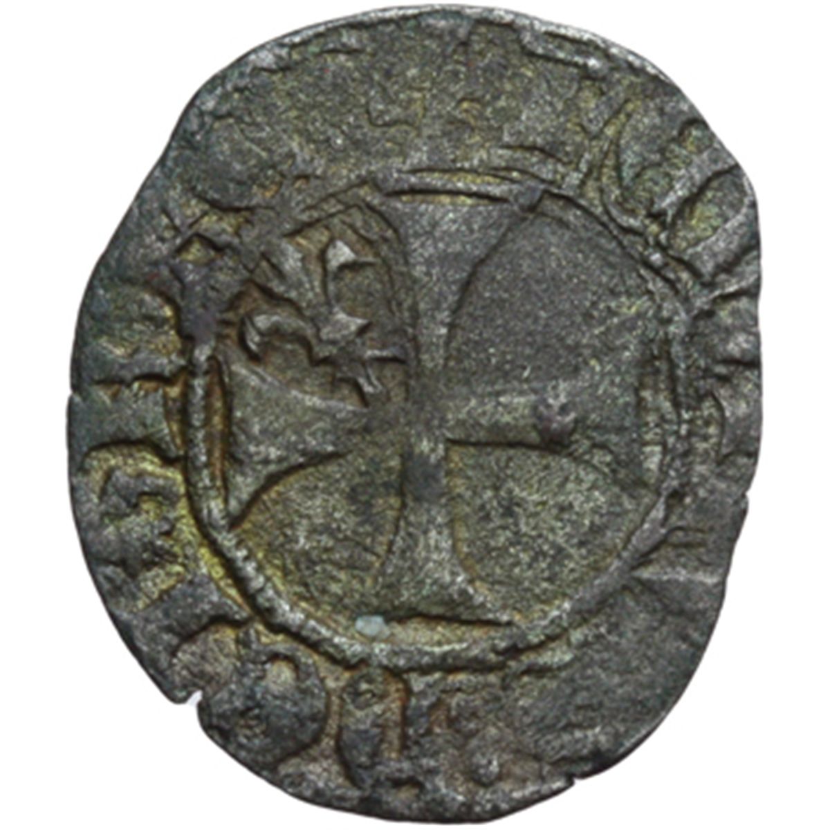 Monete e Medaglie di Zecche Italiane. L'Aquila. Renato d'Angiv= (1435-1442). Quattrino. B. 112. MI. RRR. qBB.